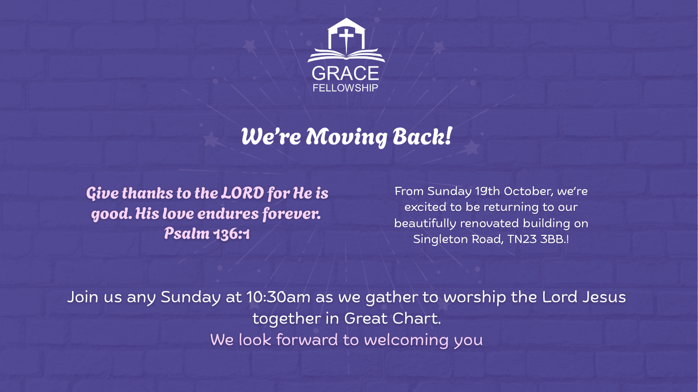 The Lord has blessed us as a congregation and so we anticipate an exciting building project this year 2025. During this time, the church will be meeting at Highworth Grammar School from 9th March for approximately 6 months. May the Lord strengthen our hands.